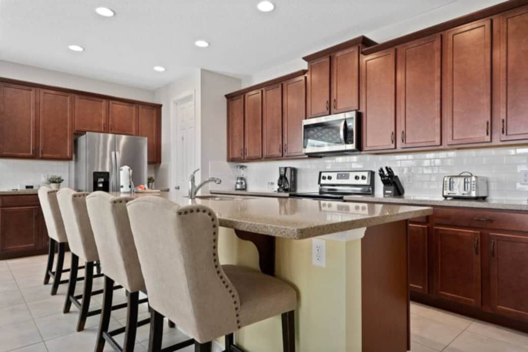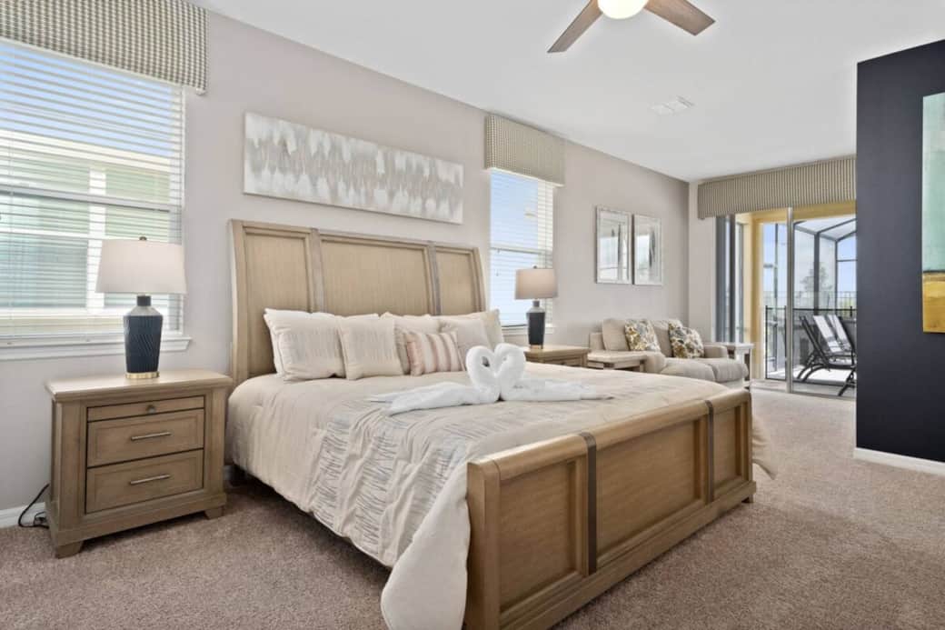 Welcome to our Solara Resort home, perfect for large groups, multiple families, or those desiring plenty of space on their getaway. Sleeps up to 17. The beautiful interior includes both high-end master suites as well as themed kids' rooms. A large game room with arcade consoles, individual console stations, and a pool table is sure to provide entertainment for all ages. Solara resort provides an expansive gym, water park area, and restaurant with spectacular food. Short drive to all parks.